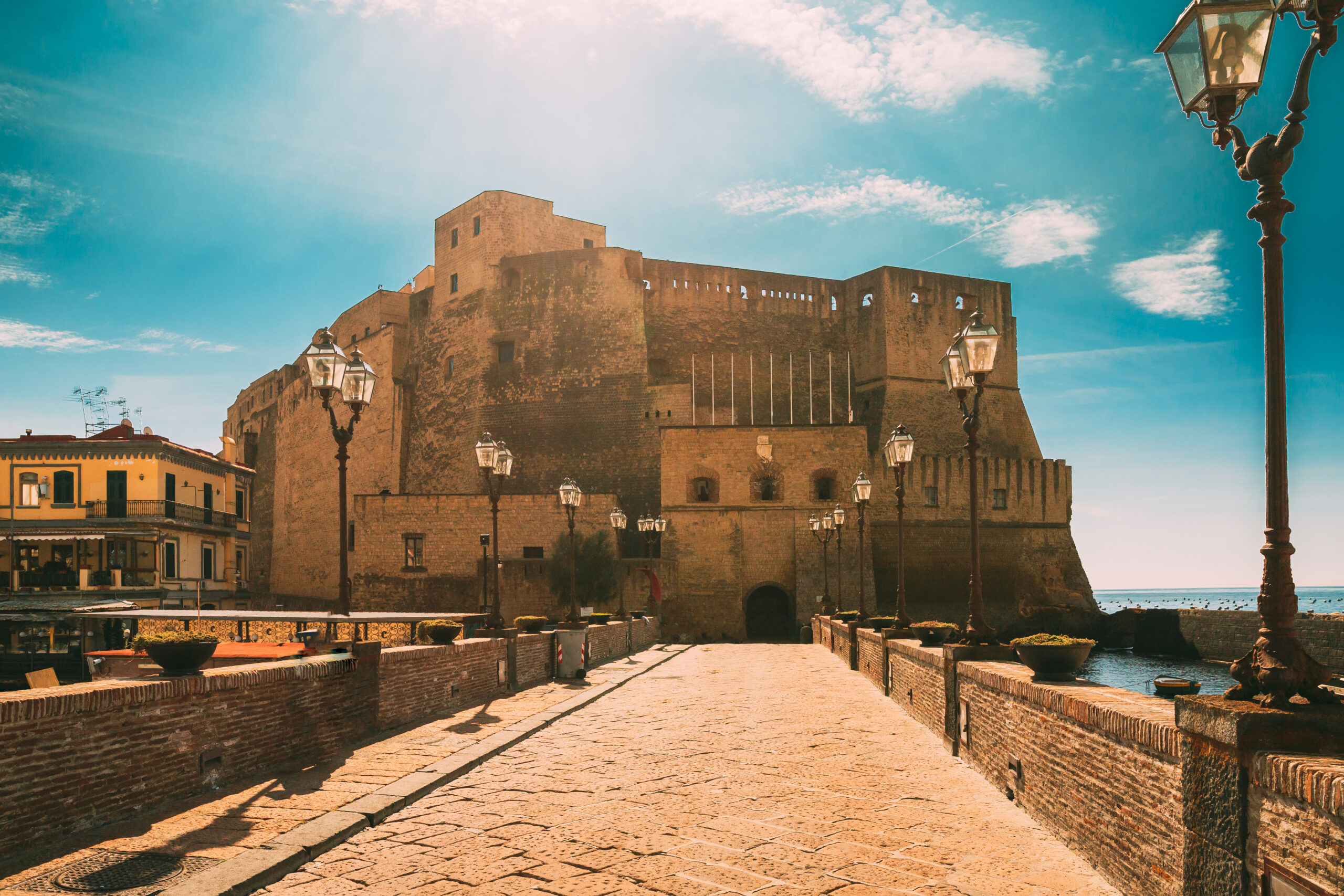 Incorniciato dal borgo marinaro e dal porticciolo di Santa Lucia è uno dei simboli della città. Da questo luogo magico si dice dipendano le sorti della città. Si racconta che Virgilio vi abbia nascosto al suo interno un uovo chiuso in una caraffa e inserito in una gabbietta di ferro. Se l’uovo si fosse rotto il castello insieme a tutta la città sarebbe crollato …L’isolotto di Megaride, sul quale si eleva, è il luogo in cui sbarcarono i cumani nel VII secolo per fondare la città. In epoca romana, sull’isolotto fu costruita la lussuosa villa di Lucio Licinio Lucullo. Ma è con i Normanni che acquisisce l’attuale fisionomia di fortezza.